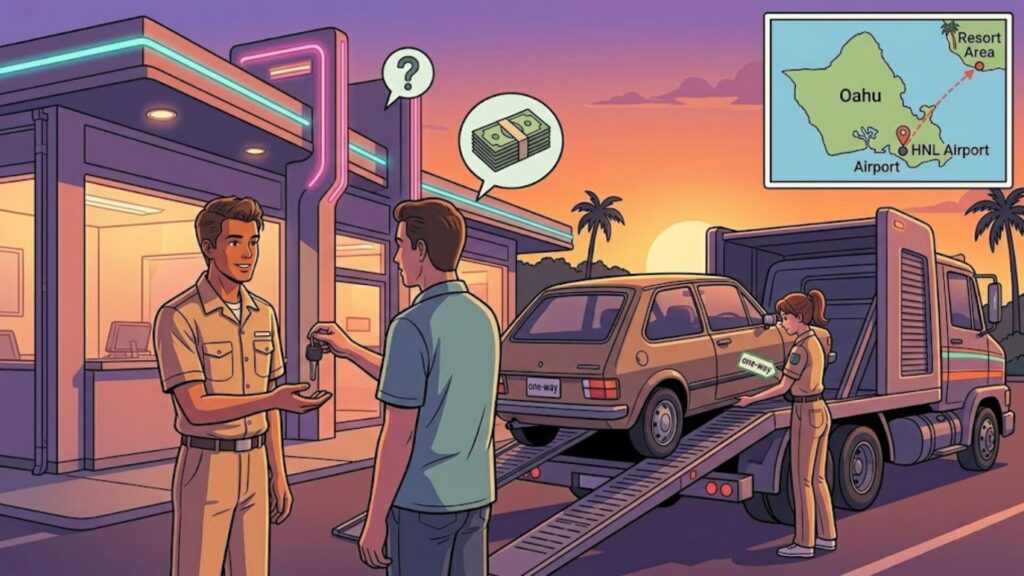 | ワイキキ受取 → HNL返却 | 最終日に空港へ直行したい人 | 乗り捨て料金と空港動線 |