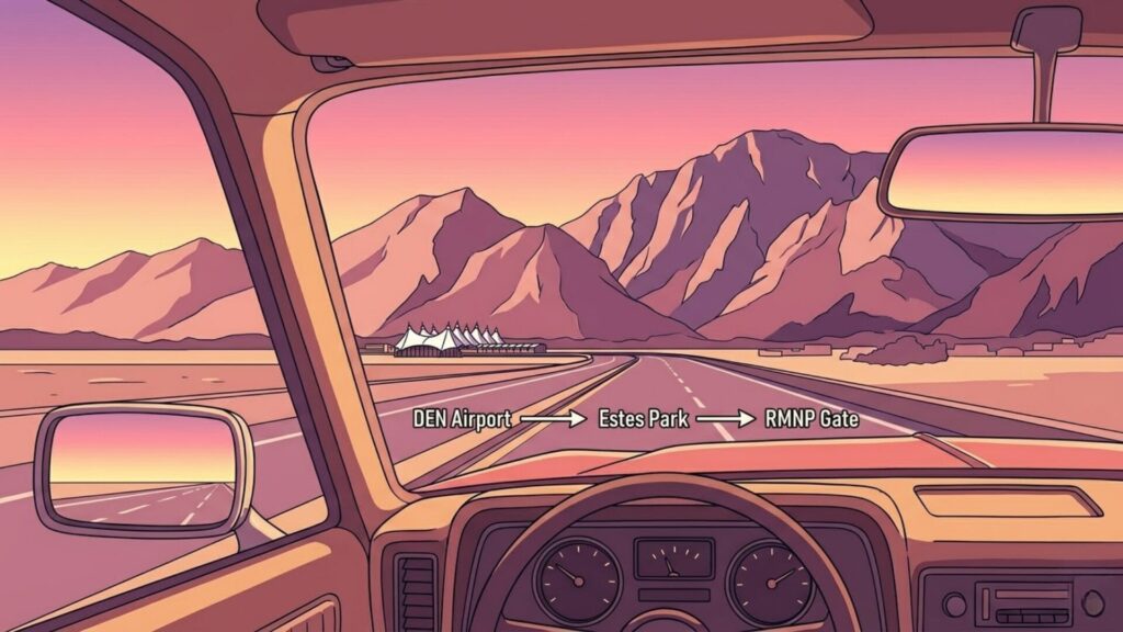 Denver起点でまず押さえたいのは、「DENからEstes Parkまでで約90分前後、その先にゲート通過や園内移動がある」という段階的な距離感です。