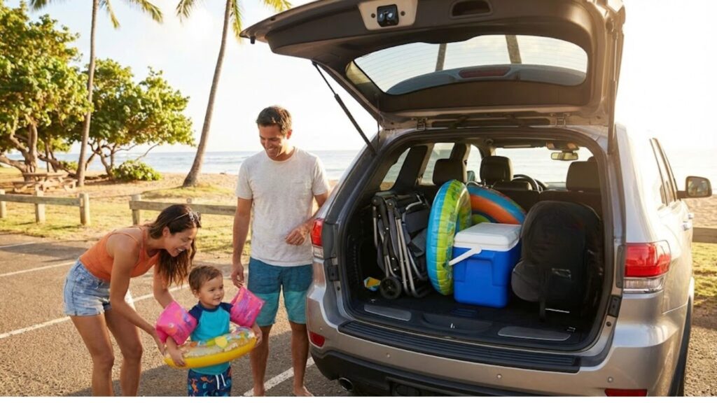 車があれば、大量のオムツや着替え、水遊び道具、買ったばかりのお土産などをすべてトランクに積み込んでおけます。