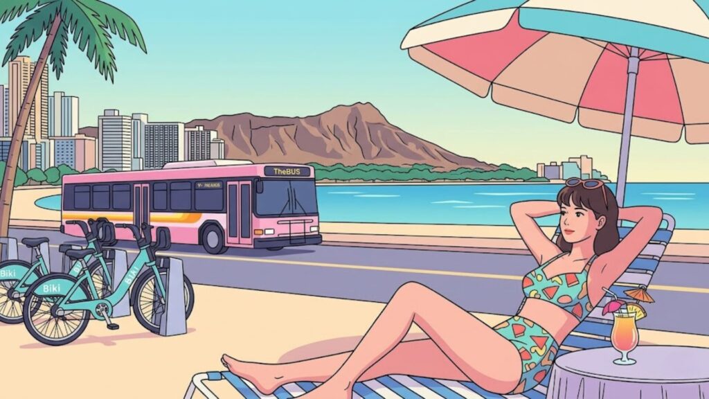 GoHawaiiは公共交通、ライドシェア、バイクシェア、ツアー会社など複数の移動手段を案内しており、TheBusもワイキキ発の来訪者向けガイドを用意しています。