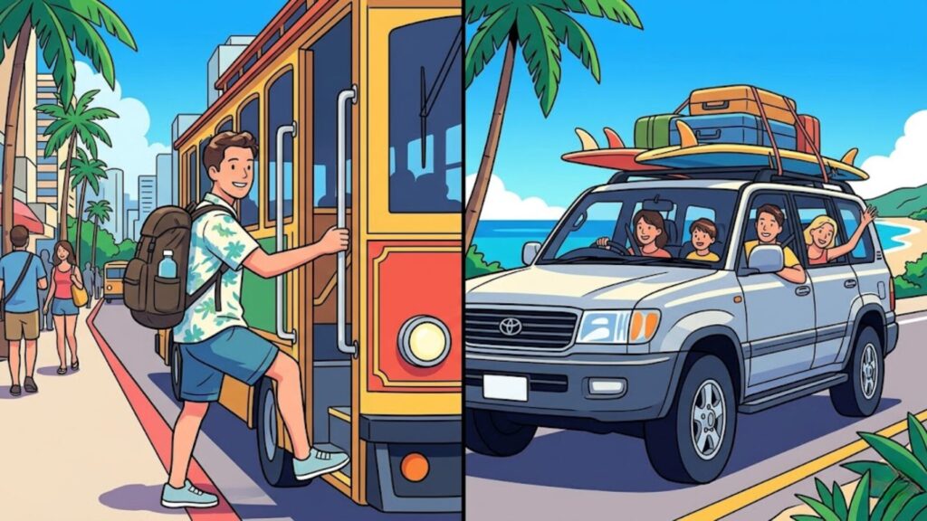 オアフではTheBus・Skyline・ライドシェア・Hui Car Shareが使えるため、郊外へ出る日だけ借りる方法はかなり現実的です。