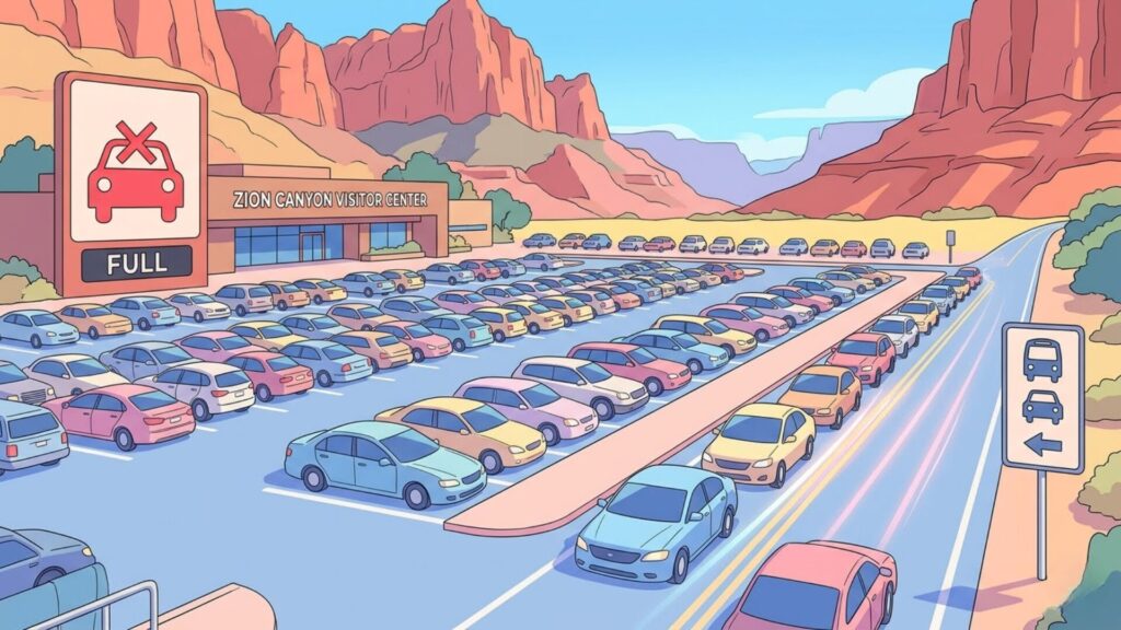 Zion Canyon Visitor Center周辺は、通年で駐車場が早い時間に埋まりやすく、夏場はとくに顕著です。